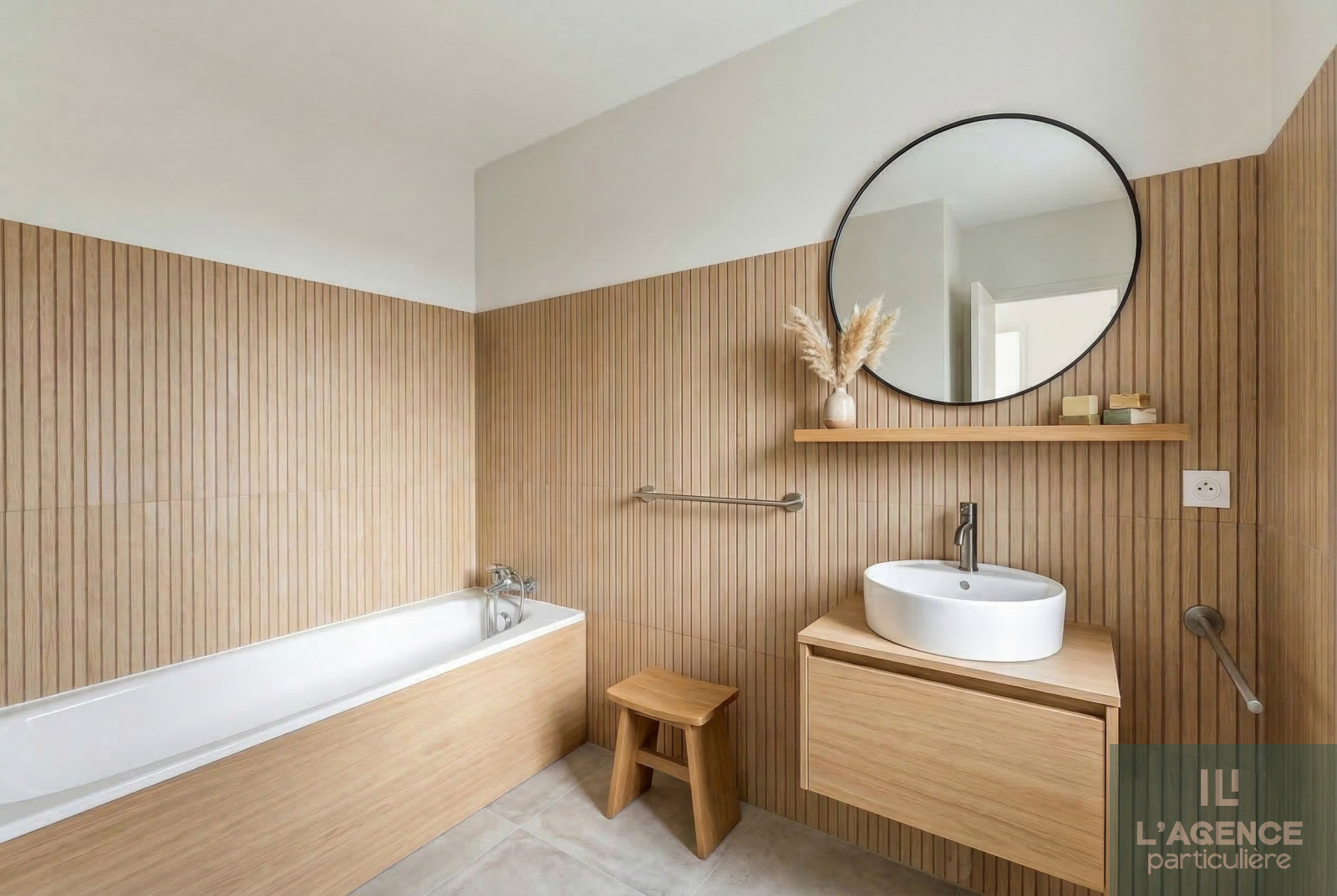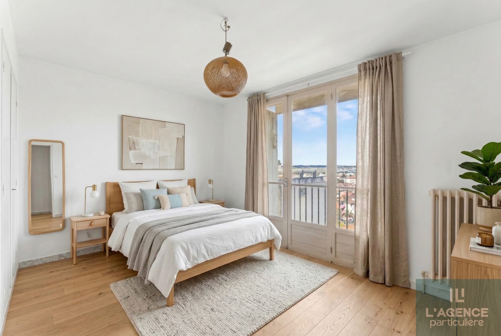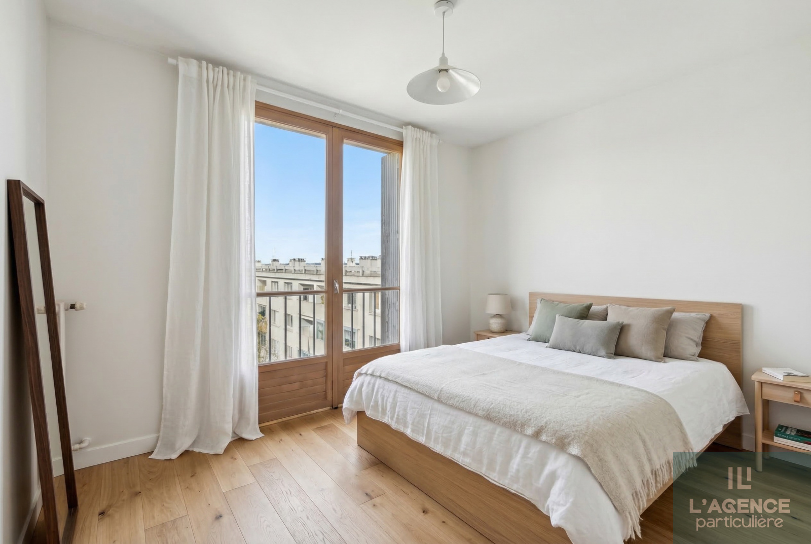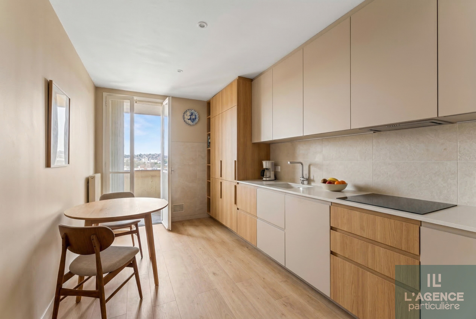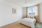 Il se compose d'une entrée avec placard, d’un salon de 18 m² pouvant s’ouvrir sur une cuisine indépendante de 11 m², le tout donnant sur un balcon de 8 m² avec une vue dégagée sur le jardin de la copropriété.