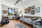 Au rez-de-chaussée, une entrée dessert deux chambres, dont une avec salle de bains, un salon lumineux de 23 m² ouvrant sur une véranda fermée de 15 m², ainsi qu’une cuisine équipée offrant de nombreux rangements et un WC indépendant.