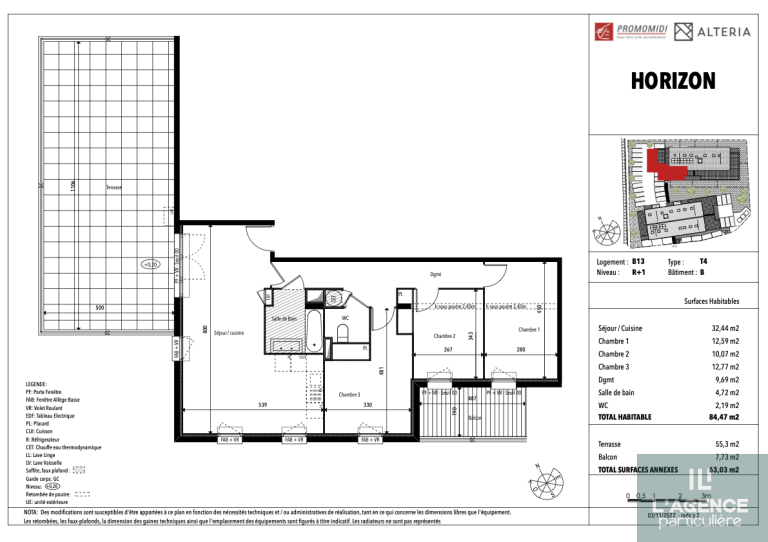 Vous propose dans une résidence neuve et idealement située cet appartement de 84m2 avec terrasse de 55m² et balcon de 8m²