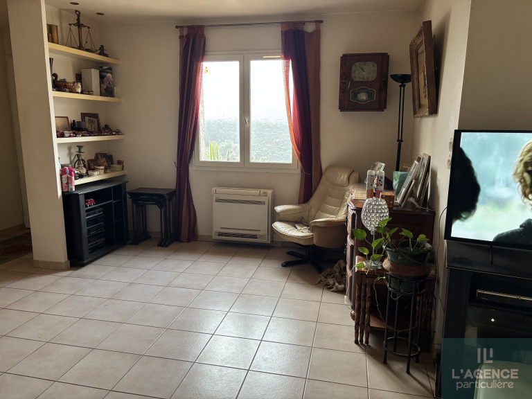 La maison se compose: une entrée, un double salon/séjour d'environ 37m2 donnant sur l'extérieur, une cuisine séparée équipée avec un coin buanderie et un grand bureau/ stockage.